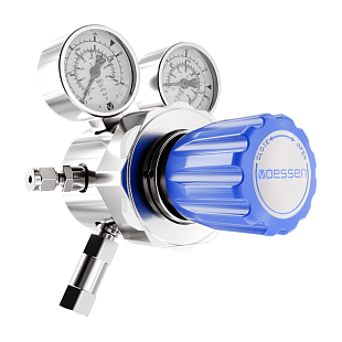 Редуктор баллонный VOESSEN CRC61HHNN с мембранной системой редуцирования, для нетоксичных и некоррозионных газов чистотой до 6.0 (99,9999%) из хромированной латуни, регулирующий избыточное давление, одноступенчатый, 6 портов, вход справа, без опций, входное давление 200 бар, выходное давление от 0 до 10 бар, присоединение к баллону - DIN9 (G3/4", гайка под ключ), трубный обжимной фитинг из нержавеющей стали 6 мм на выходе, расход газа до 250 м3/час
