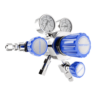 Редуктор баллонный VOESSEN CRC61HHPS с мембранной системой редуцирования, для нетоксичных и некоррозионных газов чистотой до 6.0 (99,9999%) из хромированной латуни, регулирующий избыточное давление, одноступенчатый, 6 портов, вход справа, продувочный мембранный вентиль (клапан) на входе и запорный мембранный вентиль (клапан) на выходе, входное давление 200 бар, выходное давление от 0 до 10 бар, присоединение к баллону - DIN9 (G3/4", гайка под ключ), трубный обжимной фитинг из нержавеющей стали 6 мм на выходе, расход газа до 250 м3/час