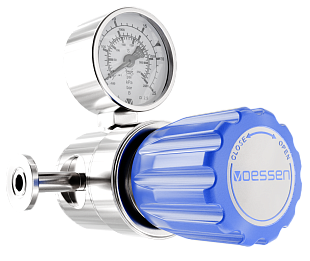 Линейный регулятор VOESSEN LRS6NH4R, с мембранной системой редуцирования, из нержавеющей стали марки AISI/ASTM 316L для слабокоррозионных и токсичных газов чистотой до 6.0 (99,9999%), расход газа до 30 м3/час, регулирующий избыточное давление, 4 порта, вход справа, входное давление 40 бар, выходное давление от 0 до 2 бар, фланцевое соединение 1" из нержавеющей стали на выходе, стандартный входной манометр с трубкой Бурдона, фланцевое соединение 1" из нержавеющей стали на выходе, без манометра (порт заглушен)